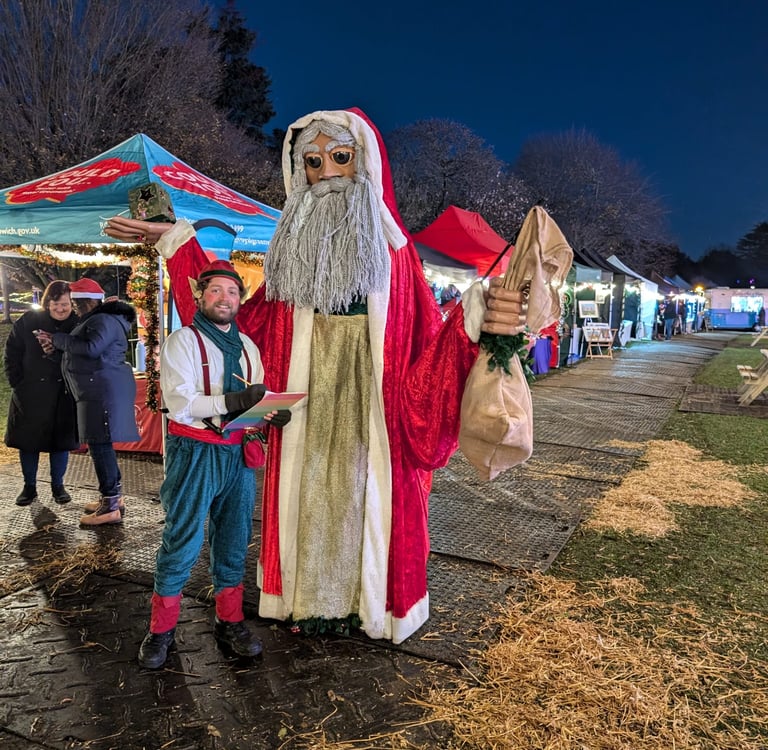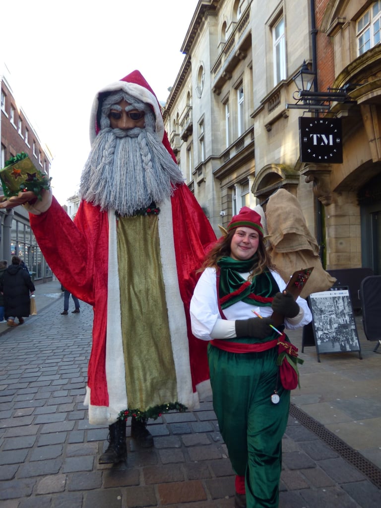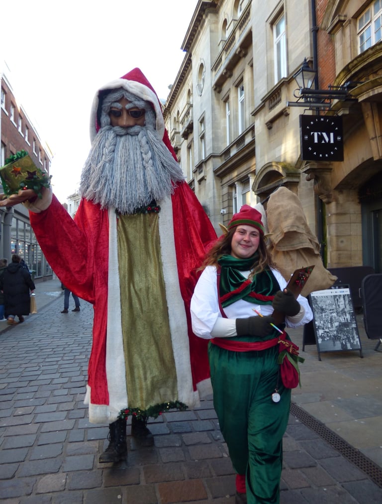 This giant puppet is like no Santa you've ever seen before. Along with his charmingly bureaucratic elf, they are a fun and eye-catching duo that really stands out at any Christmas event.