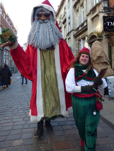 This giant puppet is like no Santa you've ever seen before. Along with his charmingly bureaucratic elf, they are a fun and eye-catching duo that really stands out at any Christmas event.